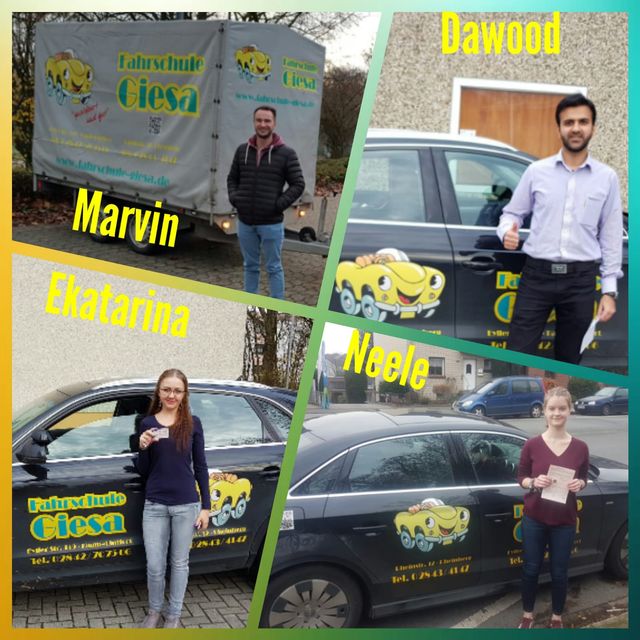 Herzlichen Glückwunsch an unsere Führerscheinneulinge: Marvin, Dawood, Ekatarina & Neele