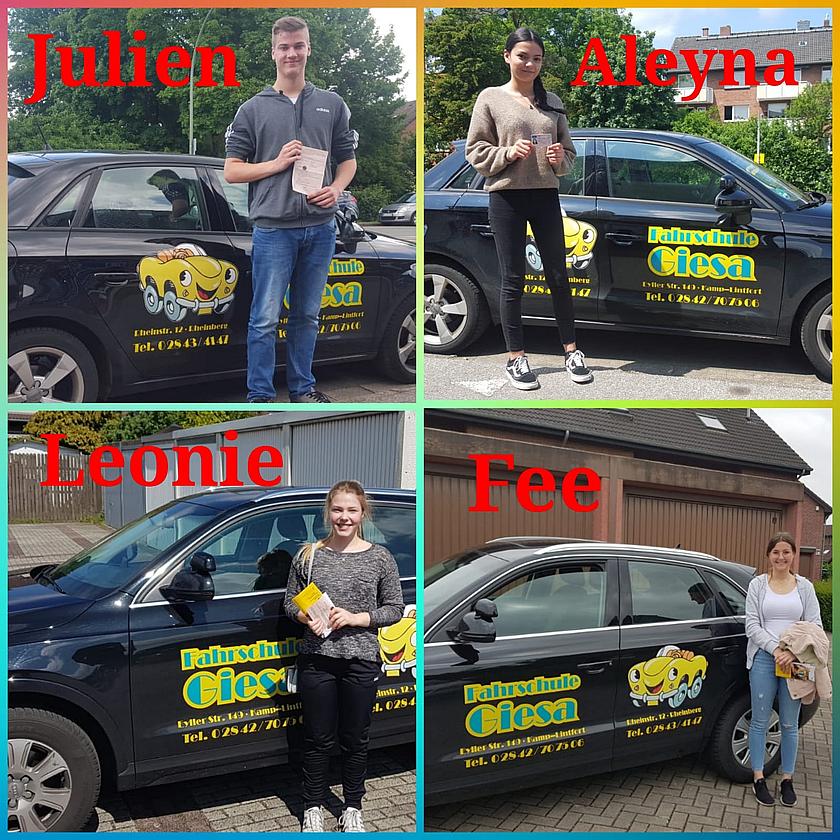 Des Weiteren gratulieren wir auch unseren Neulingen, die heute ihren PKW-Führerschein erfolgreich erhalten konnten: Julien, Leonie, Aleyna & Fee...