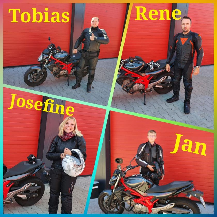 Herzlichen Glückwunsch an unsere frischen Motorrad- Führerscheininhaber/innen: Tobias, Rene, Josefine & Jan