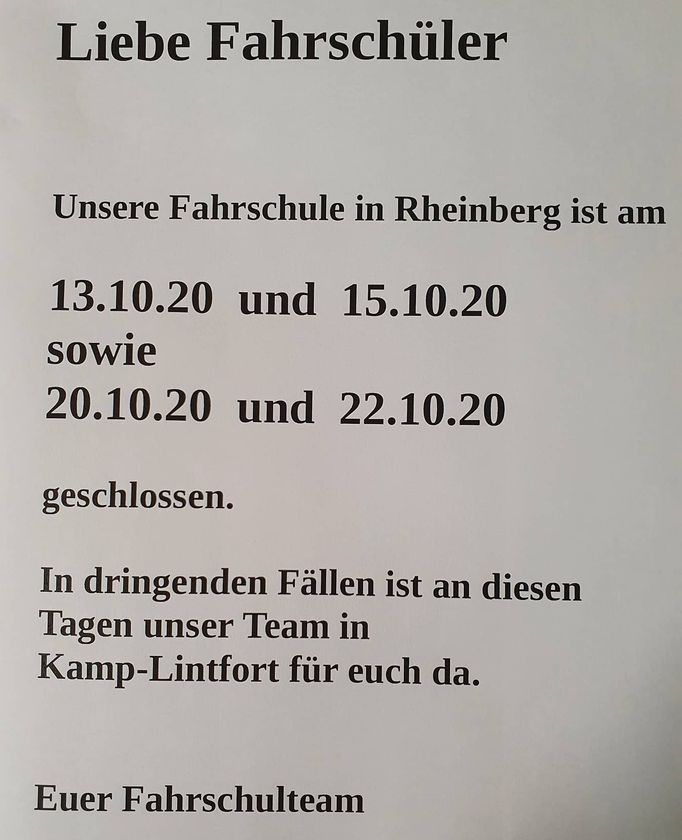 unsere Fahrschule in Rheinberg wird an folgenden Tagen geschlossen bleiben: