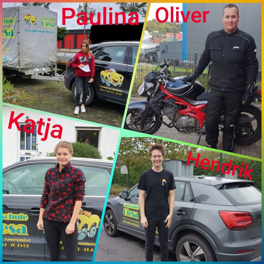 Herzlichen Glückwunsch an unsere frischen Auto-, Motorrad- und Anhängerführerscheininhaber: Paulina, Oliver, Katha & Hendrik