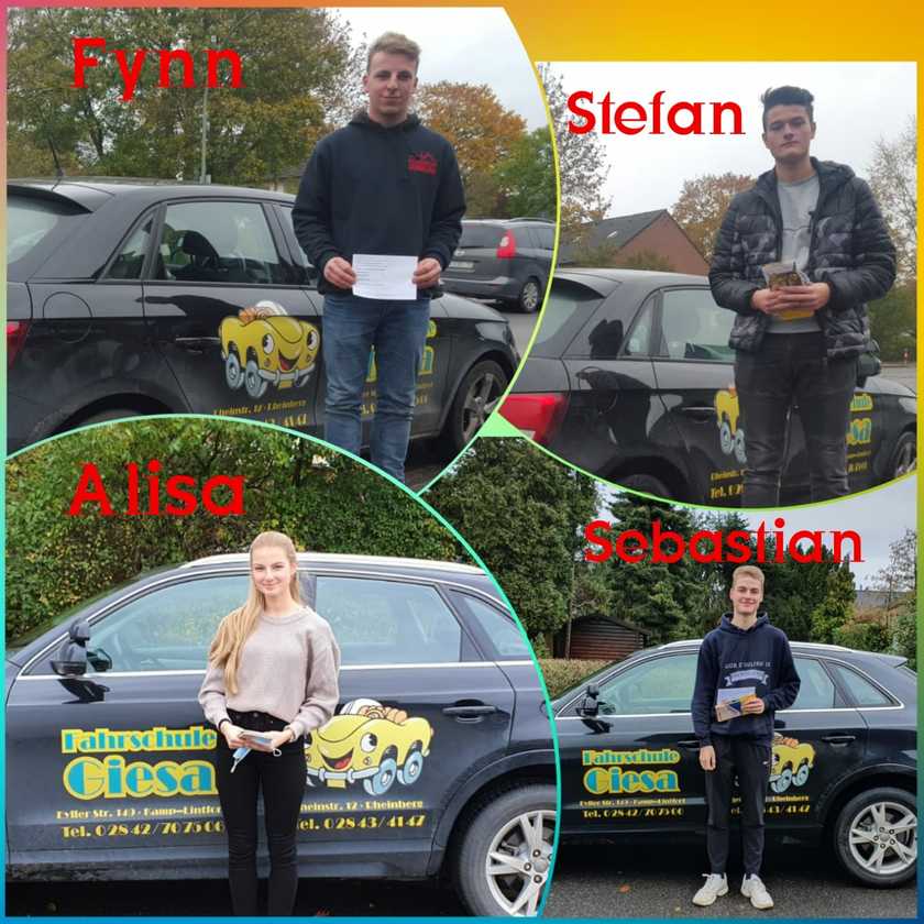 Herzlichen Glückwunsch an unsere frischen Autoführerscheininhaber: Fynn, Stefan, Alisa & Sebastian