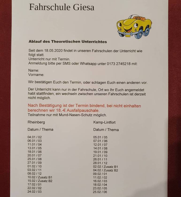 Hier wieder die aktuelle Liste zum Anmelden für den theoretischen Unterricht.
