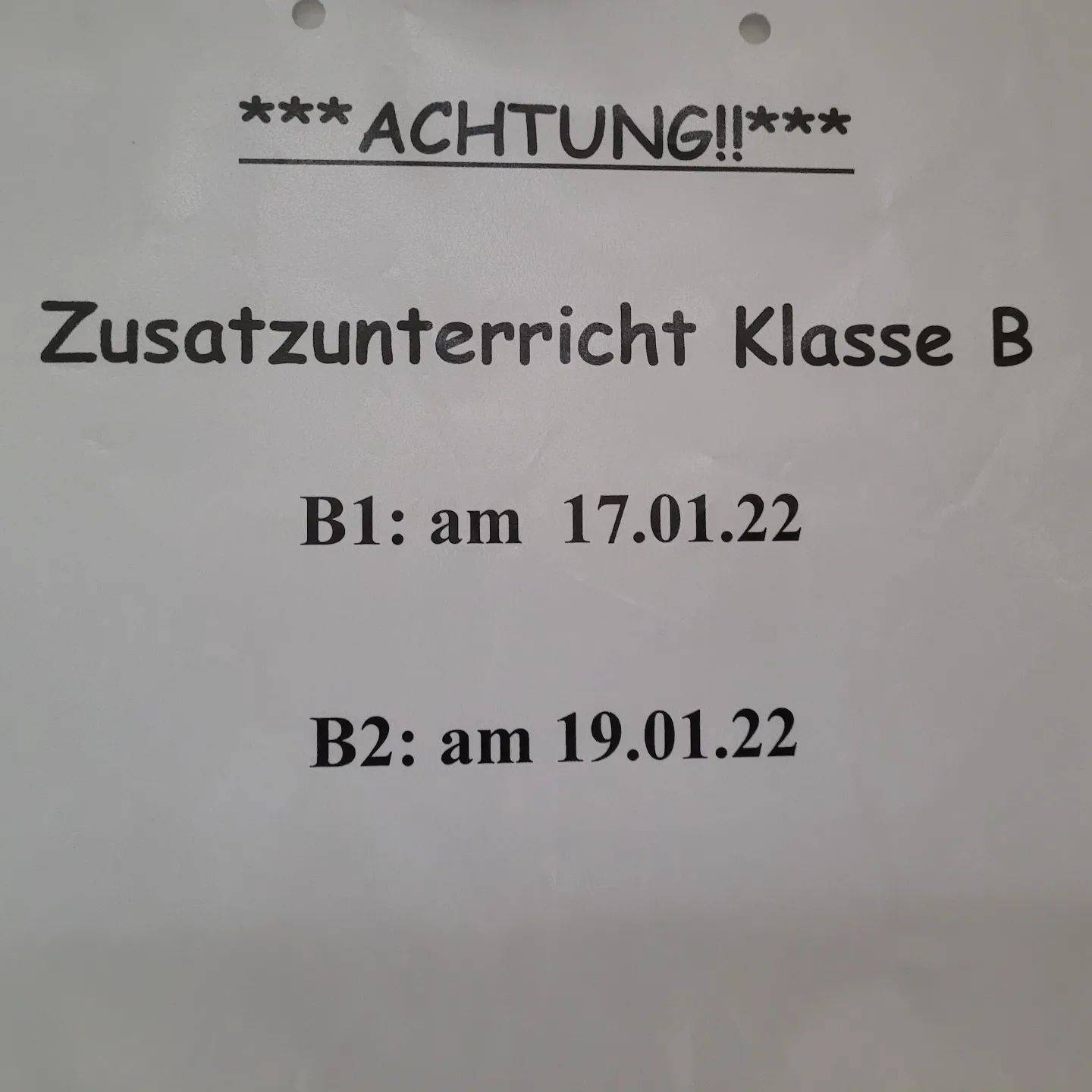 Am Montag, den 17.01. veranstalten wir einen Zusatzunterricht für die Klasse B1.