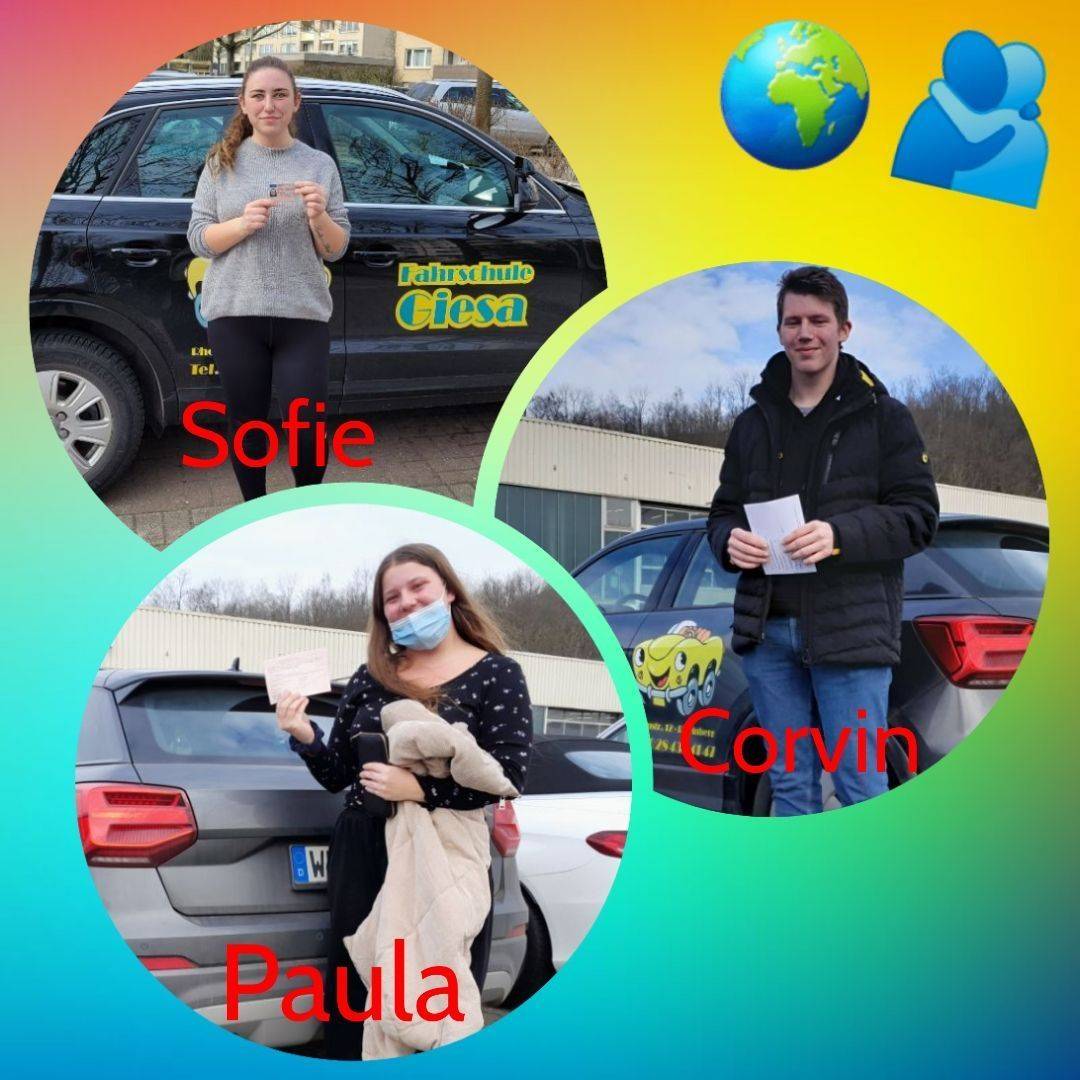 Herzlichen Glückwunsch an unsere frischgebackenen Autoführerschein-Inhaber: Sofie, Corvin und Paula