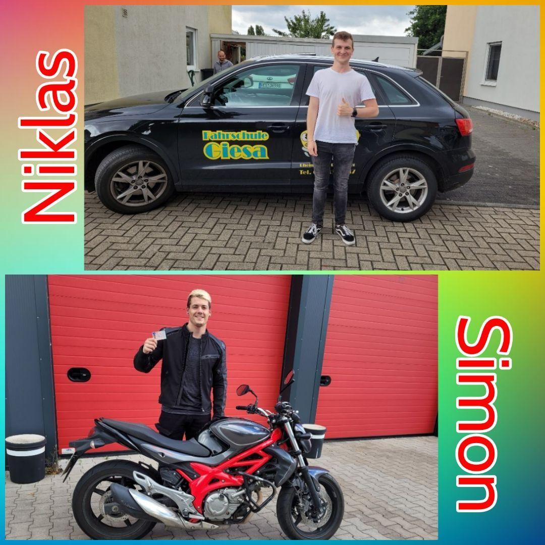 Herzlichen Glückwunsch an unsere frischgeprüften Auto- und Motorradführerscheininhaber: Niklas & Simon