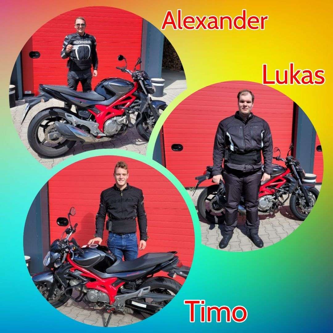 Herzlichen Glückwunsch an unsere frischgeprüften Motorradführerscheininhaber: Alexander, Lukas & Timo
